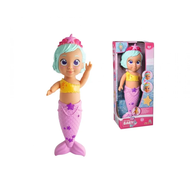 Badepuppe – die kleine Meerjungfrau mit lila Schwanzflosse und süßem Diadem ist eine tolle Spielgefährtin für Kinder kann zum Spielen mit in die Badewanne genommen werden. Taucht man die Puppe in warmes Wasser (> 31°C), so verändert sich die Farbe des Muscheldiadems wie auf magische Weise von Pink zu Goldgelb. Die New Born Baby Meerjungfrau kann an der Hüfte aufgeschraubt werden wird somit schnell wieder trocken. Die Spielpuppe ist 30cm groß und besitzt bewegliche Arme. Sie ist für Kinder ab zwei Jahren geeignet.