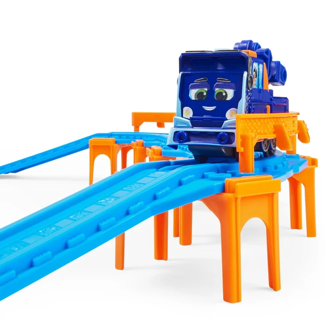 Beim Eisenbahnspiel ist der Aufbau einer Strecke schon der halbe Spaß. Mit dem Mighty Express Schienen Set lässt sich das Streckennetz um Lokstadt ausbauen und mit Steigungen und Brücken spannend gestalten. Das Set umfasst neben 18 klassischen Gleisstücken auch Rampen, Stützpfeiler und Führungsschienen sowie eine besondere Ausführung der Push-and-Go Mechaniker Milo Lok. Ist die Wunschstrecke aufgebaut, einfach Milo auf die Schienen setzen und ins nächste Abenteuer schieben. Mit seinem beweglichen Schraubenschlüssel-Arm ist er der ideale Zug, um Reparaturen vorzunehmen, wo immer sie anfallen. Mit dem Schienenset lassen sich die verschiedenen Mighty Express Spielsets erweitern, damit noch mehr Züge gleichzeitig unterwegs sein können, um gemeinsam die kniffeligsten Missionen zu meistern. Mit Mighty Express lernen Vorschulkinder alles über Individualität, Teamarbeit und Freundschaft und trainieren beim Spielen gleichzeitig ihre motorischen und kognitiven Fähigkeiten.