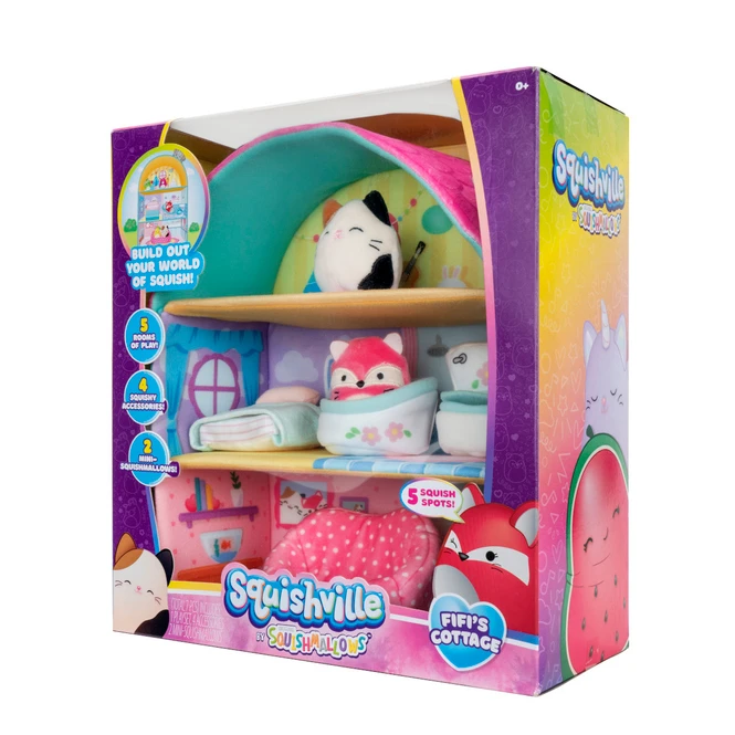 Zuhause ist es doch am Schönsten! Quetsche dich in eine der gemütlichsten Unterkünfte, welche die Squishville-Welt zu bieten hat, Fifis Hütte. Dieses entzückende Plüschhäuschen kommt mit 2 der beliebtesten Squishmallows, Cam, die Katze, und Fifi, den Fuchs, in einer Mini-Größe von 5 cm. Die beeindruckende dreistöckige Hütte ist perfekt für den Ausbau dieser aufregenden neuen Welt. Die vollständig aus Plüsch gefertigte Squishville-Welt besteht aus einer superweichen Marshmallow-ähnlichen Füllung, was sie zum gemütlichsten Ort der Welt macht. Quetsche und drücke Cam und Fifi in die Couch, die Toilette, den Schornstein und vieles mehr. Es gibt 5 lustige Zimmer, in die man sich hineinquetschen kann, und 4 kuschelige Accessoires, mit denen man spielen kann. Ergänze deine Squishville-Welt mit all deinen Squishmallows-Lieblingen in ihrer neuen 5 cm Größe.
